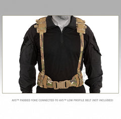 Our AVS Padded Yoke allows you to turn the AVS Chest Rig into a standalone chest rig. The yoke can also be used in conjunction with any of our AVS Plate Bags to form a modular vest with a padded neck and shoulder area. It can also be used as a comfortable load-bearing means of adding support for any of our belts. Made in the US from US materials.
